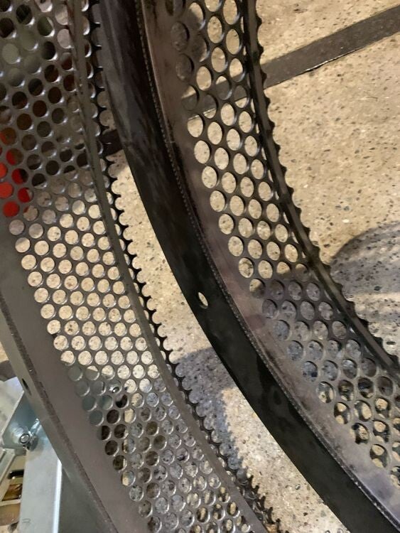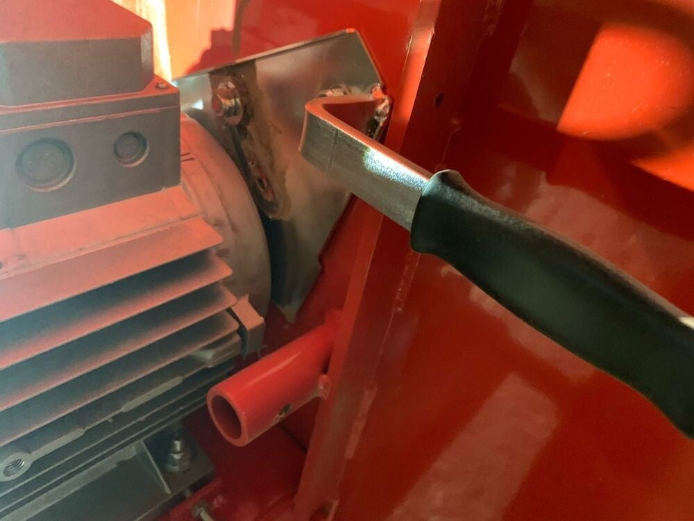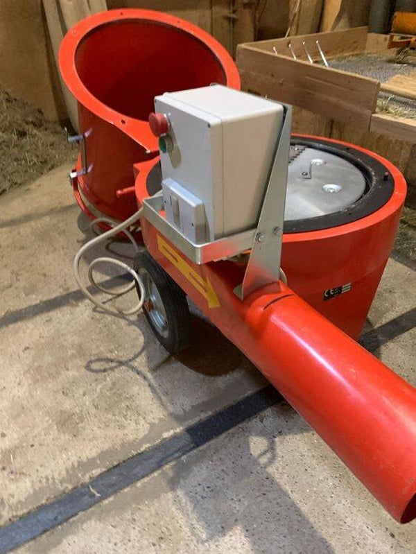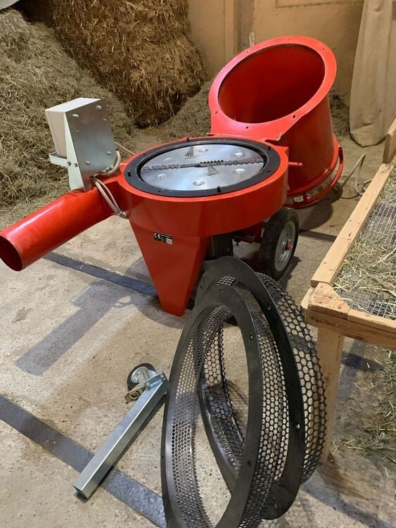 Sie ist mit 3 Sieben (8mm10mm & 15mm), einer Häckseltrommel und einem Auswurfrohr ausgestattet.